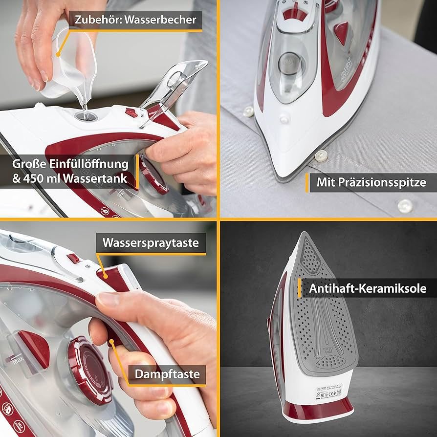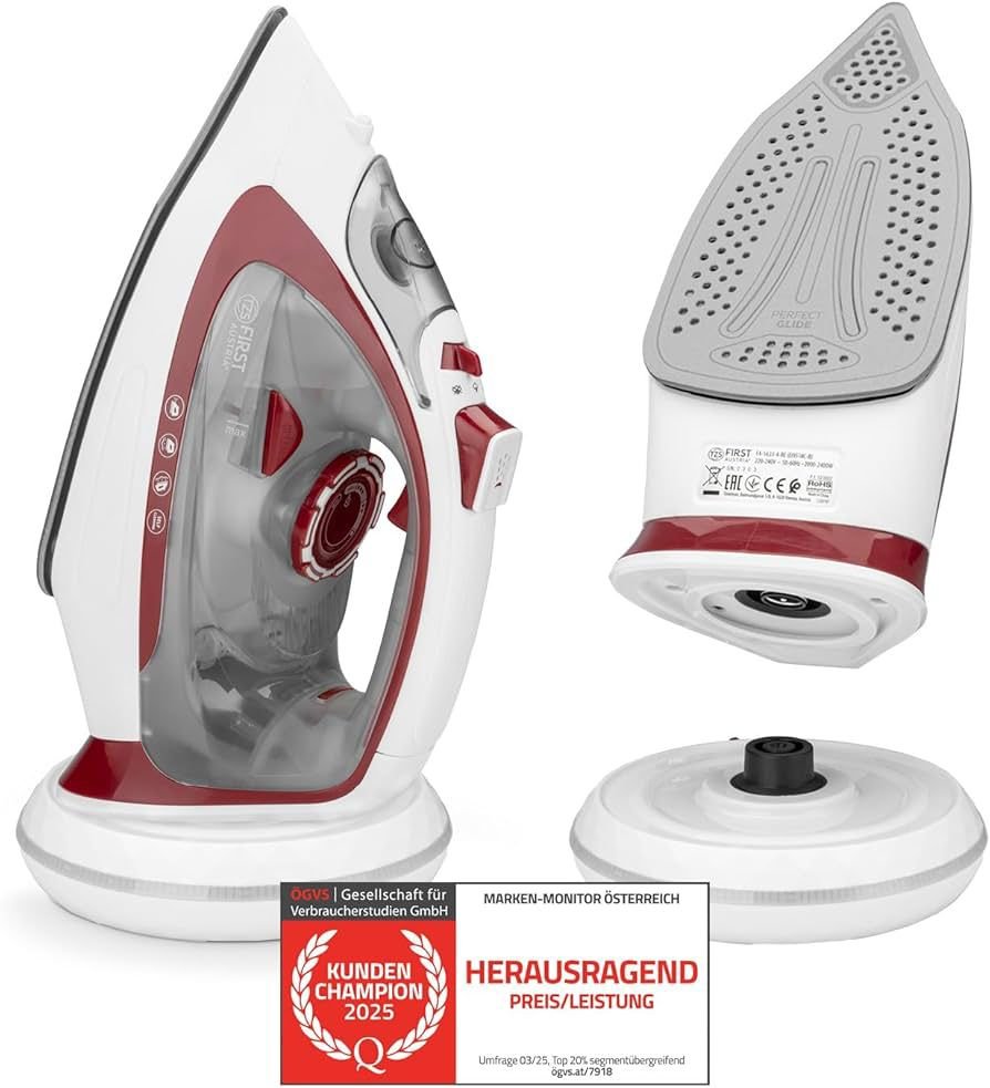 TZS First Austria – Dampfbügeleisen kabellos mit Station 2400W – Schnurloses Dampf Bügeleisen 450 ml Tank mit Tropfstop, verstellbarer Temperatur, Dampfstärke & Keramik Bügelsohle – Mit Vertikaldampf