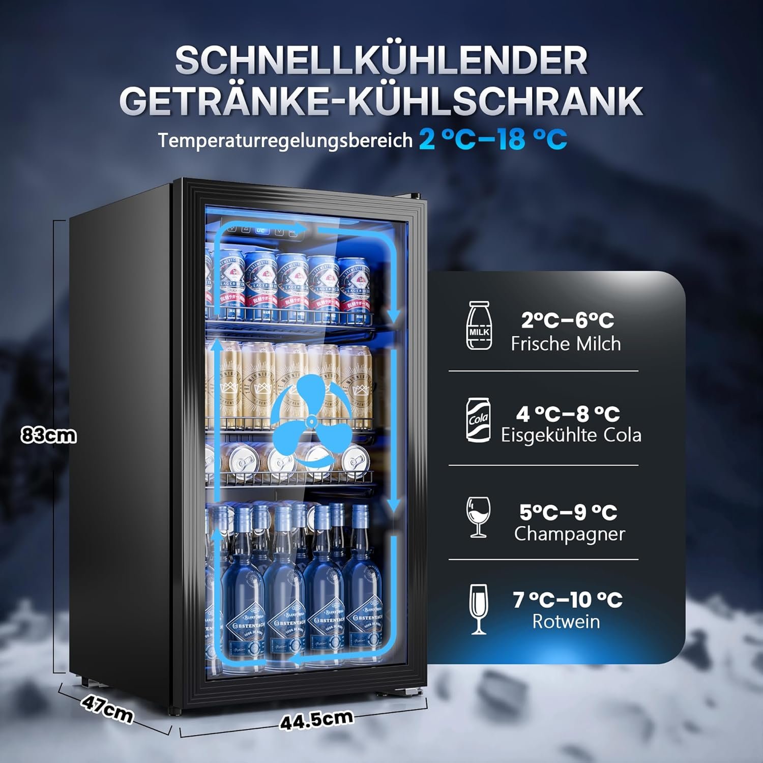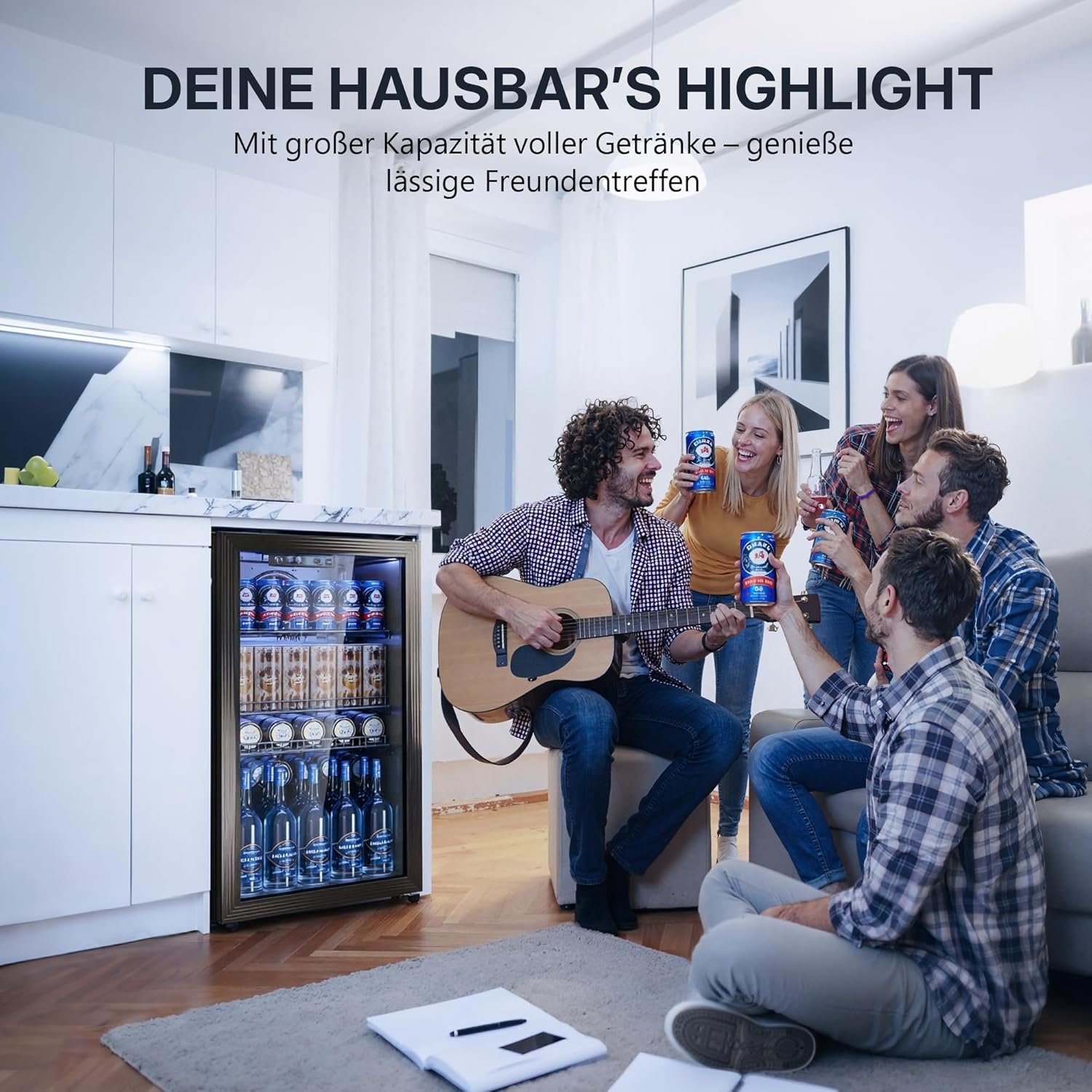 - ABSOLUTE RUHE, PERFEKTE KÜHLUNG- Leistungsstarker, leiser Kompressor (luftgekühlt) sorgt für gleichmäßige Kühlung. Getränke bleiben temperiert – ohne Störungen: Büro, Filmabend oder Bar.