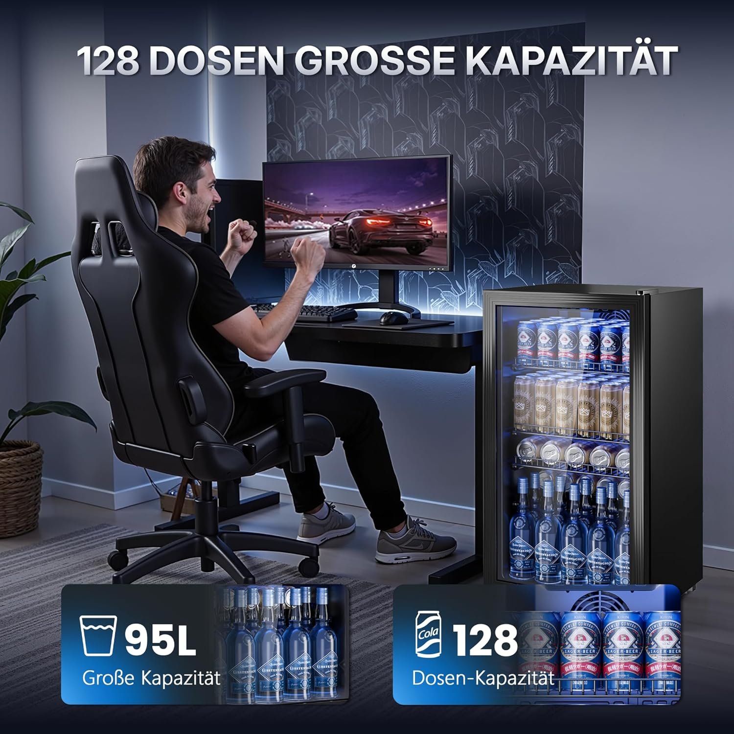 - 128 DOSEN, PERFEKT ORGANISIERT- Der 95L-Kühlschrank fasst Ihre Getränke für jede Gelegenheit. 3 flexible Regale halten Dosen, Weinflaschen (stehend/liegend) griffbereit und ideal gelagert.
