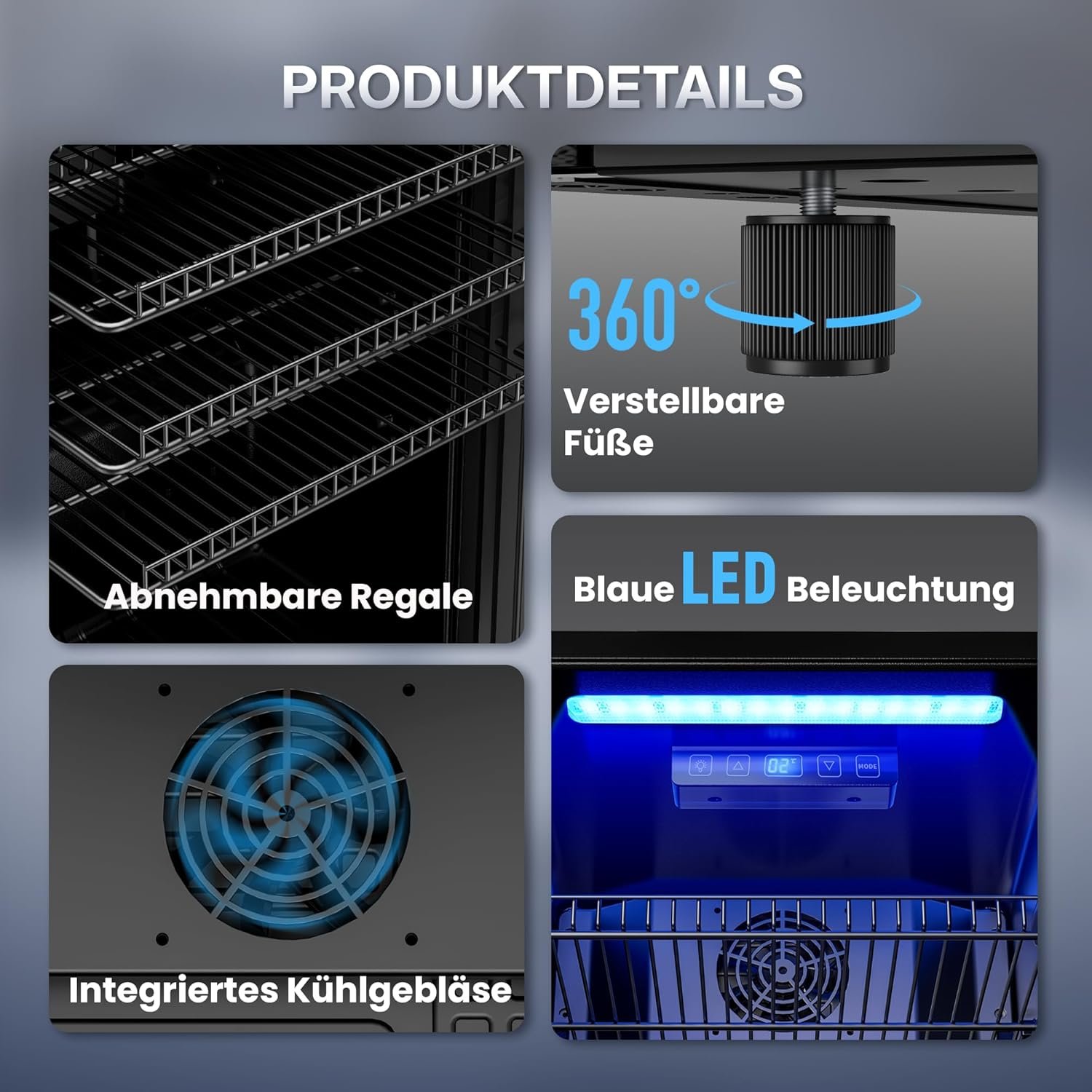 Besonderes Merkmal Digitale Temperaturregelung, Frostfrei, LED-Anzeige, Niedriger Geräuschpegel,