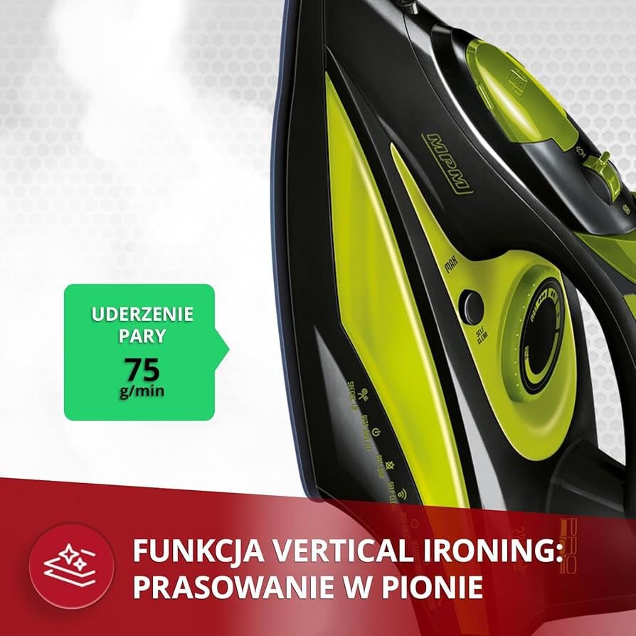 MPM Dampfbügeleisen MZE-04/C – Bügeleisen mit Dampfstoß 2600 W – Vertikaldampf & Antihaft-Sohle – Anti-Kalk, Tropfstopp, Selbstreinigung – Schnelles Faltenfreies Bügeln