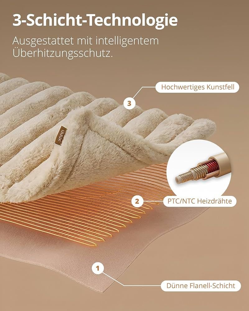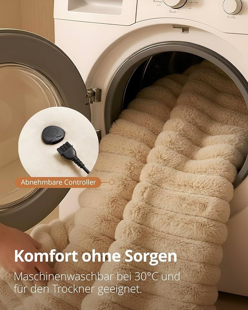 SICHER UND EINFACH ZU WARTUNG – Ausgestattet mit intelligentem Überhitzungsschutz und abnehmbarer Bedienung. Waschbar bei 30°C und trocknergeeignet, damit er frisch und weich bleibt.
