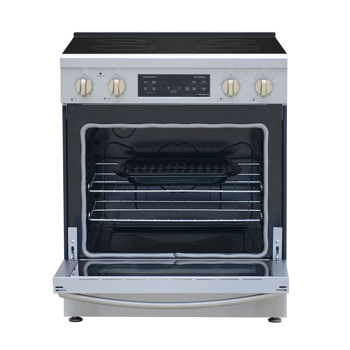 Cuisinière Électrique Inox 30” – 4 Plaques & Four Multifonction